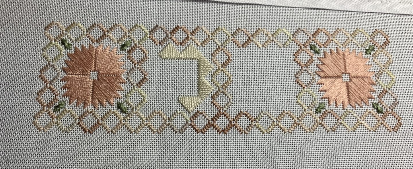 Well….. waiting in the wings has been my new Judy Dixon Autumn Promise and Autumn Secrets. (These designs are very similar in style to band samplers). The designs are made up of Hardanger and Drawn Thread with motifs and beads. I stumbled across them on Etsy at Tales in Stitches and fell in love with the look of all the designs straight away.