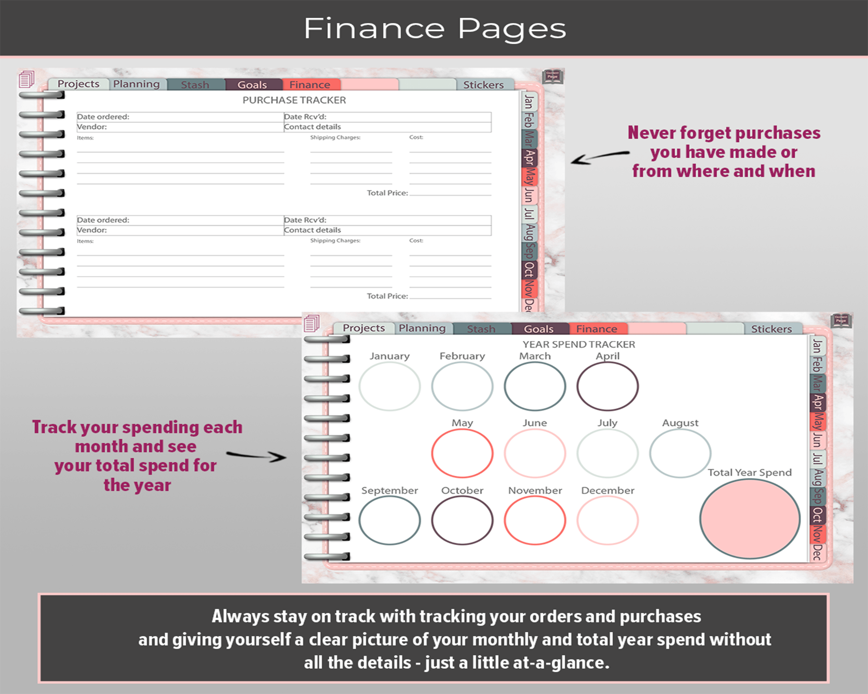 This digital planner includes several hyperlinks throughout to ensure effortless navigation. The ability to move to pages with the click of a button reduces the need for swiping.