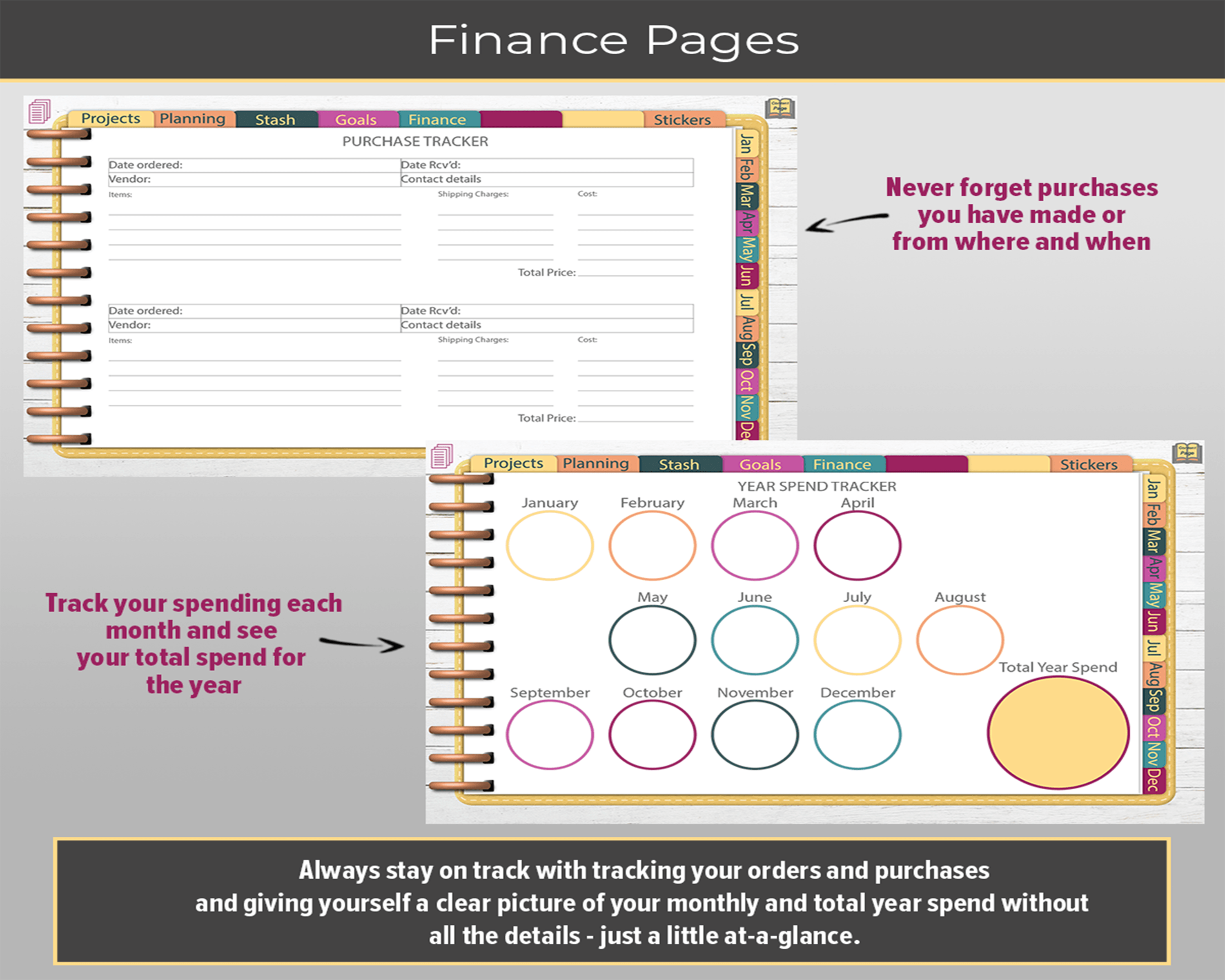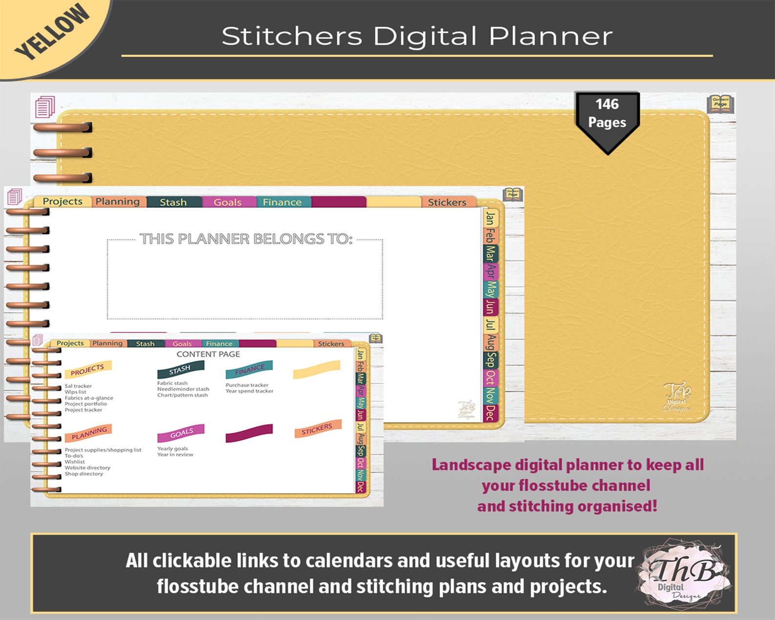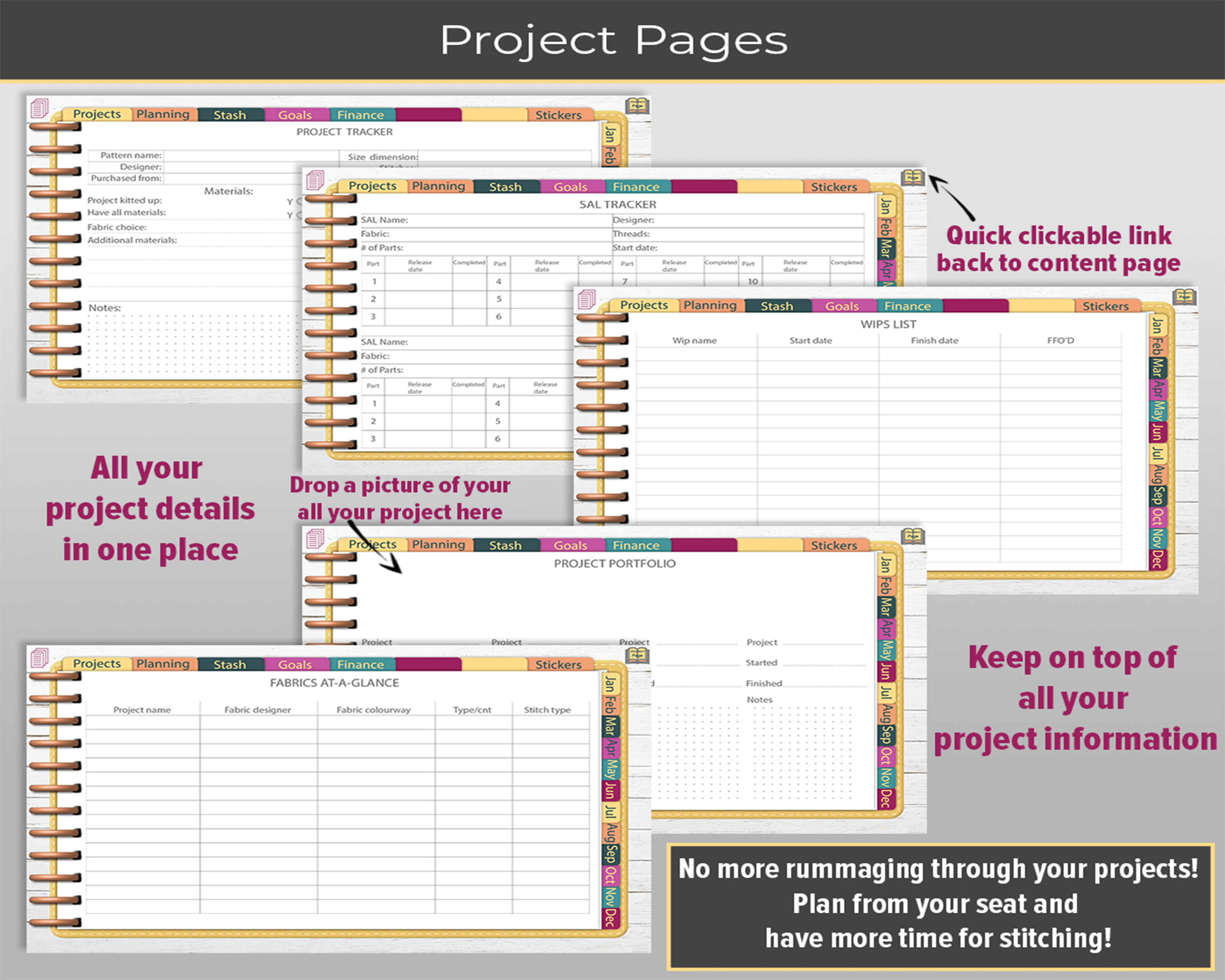 This planner has a professional but bright design that gives you the freedom to plan your stitching life exactly as you like. It includes monthly and weekly overview pages all hyperlinked.